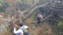 영천의 에베레스트로 불리는 자양면 기룡산 정상가는 길에 큰 소나무 3~4그루가 지난 태풍에 쓰러져 등산객들의 등산길을 가로막고 [