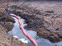 대창면 사리 대명환경 입구 부근에서 지난 12일 현장 작업 중이던 중장비에 의해 송유관이 터져 기름이 흘러 이 일대를 아수라장으로 만들었다.