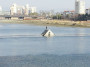 영천교 밑 금호강 물이 빠지자 낚시꾼들이 여기저기서 낚시를 하고 있는데, 지난 21일 오후 한 낚시꾼은 위험스럽게도 고무보 중간 시설물에 올라