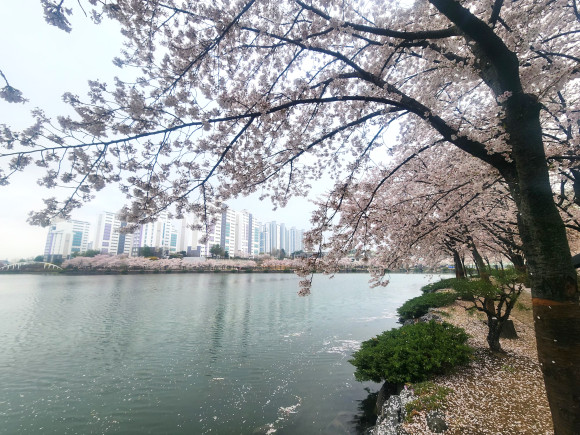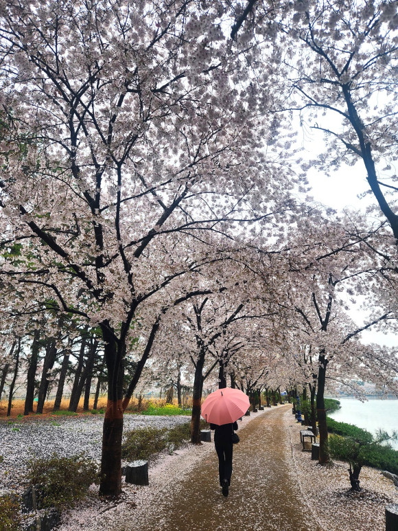또 아이 손을 잡은 가족, 연인과 친구들, 혼자 사색에 잠긴 시민들까지 각자의 방식으로 짧은 벚꽃의 시간을 즐기고 있어 도심 속 자연이 주는 위로와 여유가 시민들의 일상에 잔잔한 활력을 더하고 있다.