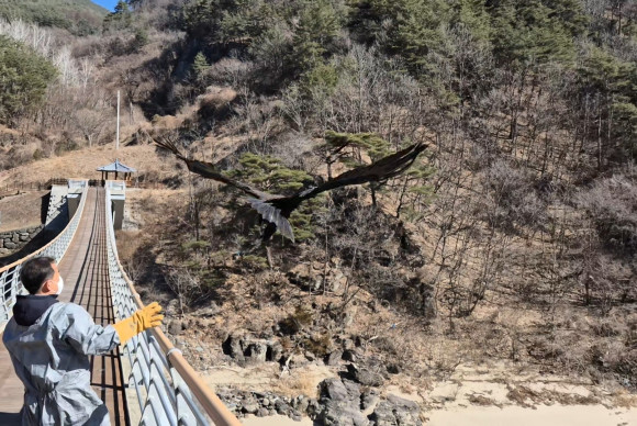 ↑↑ 야생 독수리를 치료하고 돌려보내고 있다.