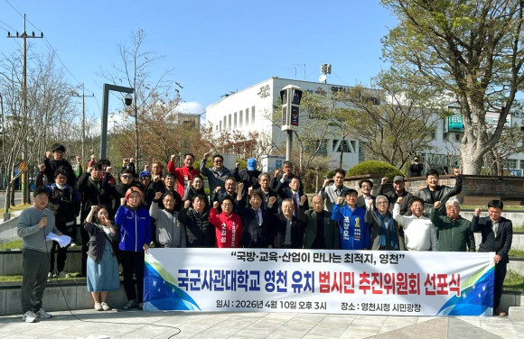 대한민국 군 교육 체계의 대전환점이 될 ‘국군사관대학교’ 유치를 위해 영천시민과 정치권이 정파를 초월해 하나로 뭉쳤다. 영천시는 4월 10일 오후 3시 시청 시민광장에서 ‘국군사관대학교 영천 유치 범시민 추진위원회 선포식’을 개최하고 국방부의 사관학교 통합 및 지방 이전 정책에 대응한 본격적인 유치 활동에 돌입했다.