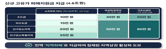 또한 거주지역과 소득 수준에 따라 1인당 10만~60만원의 ‘고유가 피해 지원금’을 지역화폐로 지급하기로 결정했다.