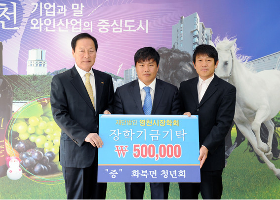 이에 앞서 영천시화북면청년회(회장 이종걸)는 지난달 27일 지역교육발전을 위해 50만원의 장학기금을 영천시장학회에 기탁했다.