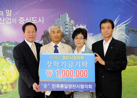 민족통일영천시협의회 전영준 회장과 회원들은 “요즘 젊은 세대의 안보의식이 낮아 안타깝다. 항상 우리 주변에 접해 있는 안보의식을 시민들에게 고취시키기 위해 노력하고 있다. 더불어 지역경쟁력은 인재로부터 나오는 만큼 인재양성이 지역미래발전을 위한 길이라 생각해 이 장학기금을 기탁하게 되었다.”고 뜻을 전했다.