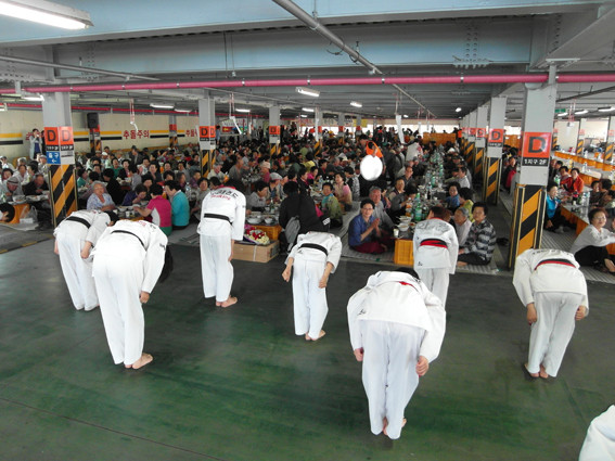 화랑태권도 도장의 어린이 태권무와 민요가수들의 즐거운 노래가 어르신들을 즐겁게 하기도 했다.