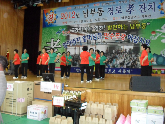 남부동 주민화합 경로잔치가 지난 6일 오전 남부동 성남여고 체육관에서 정희수 국회의원, 김영석 시장, 성찬석 영천시 노인회장, 정환상 남부동 노인회장, 한혜련 도의원 등과 주민 및 노인 800여 명이 참석한 가운데 열렸다.