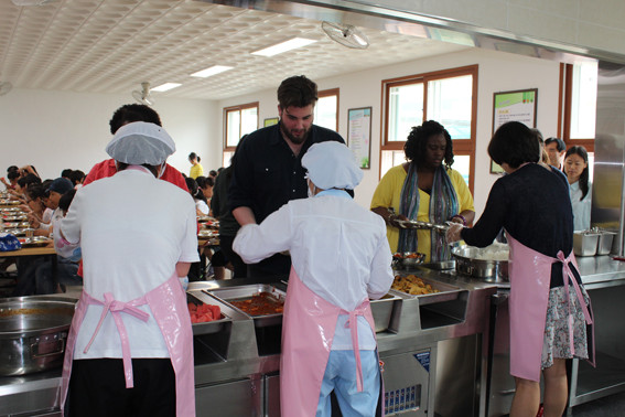 급식소 개소 후 지난 11일 영어타운을 방문한 중앙초등학교 5학년 학생들을 대상으로 첫 급식을 실시하였다. 기존의 설문결과에서는 없던 ‘급식이 맛있다.’라는 반응이 학생들의 입에서 많이 나왔다.
