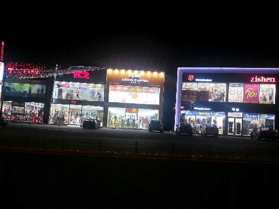 ↑↑ 오수동의 새로운 상권인 아웃도어 매장의 야간전경.