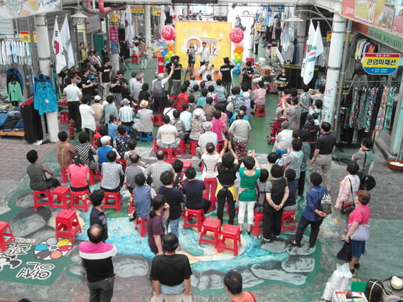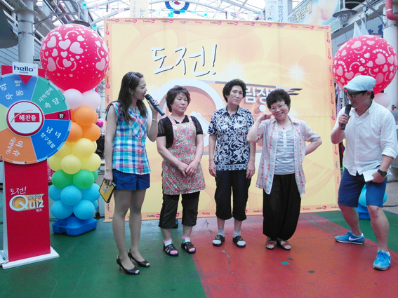 지난 18일 오후 공설시장 중앙통로에서 공설시장상인회(회장 김영우)와 CJ헬로비전 신라방송이 공동 주최한 ‘도전 퀴즈 살림장만’ 행사가 열렸는데, 1백여 명이 넘는 고객들과 상인들이 모여 즐거운 시간을 가졌다.