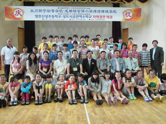 신녕초등학교(교장 권순범)와 중국 성도시금관역소학교 자매결연식이 지난 17일 오전 신녕초등학교 강당에서 양교 학생들과 교장 및 교사들이 참석한 가운데 열렸다.