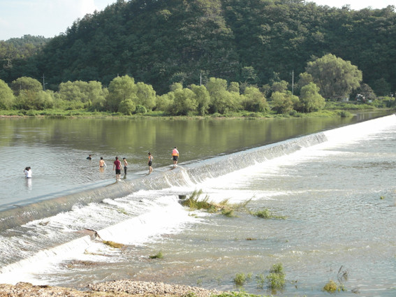 금호강에 물이 불어나 지난 25일 완산보에는 젊은이들이 보를 찾아 물놀이를 즐기며 즐거운 시간을 보냈다. 물이 가득한 완산보는 과거에 인기를 독차지 했으나 이제는 사람들의 발길이 뜸하다.