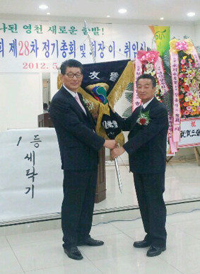 | | | ↑↑ 지난 5월 회장단 이·취임식 모습(우측이 주수호 신임회장 좌측이 김부용 이임회장). | | ⓒ 영천시민뉴스 | |