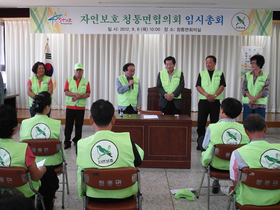 자연보호 청통면협의회는 지난 6일 오전 청통면 사무소 2층 회의실에서 박도현 청통면장 및 회원들이 참석한 가운데 임시총회를 개최하고 새 임원들을 선출했다. 신임 정선득 회장은 “자주적 독립적인 민간단체로서 책임을 다해나가면서 조상으로부터 받은 금수강산을 후손들에 잘 물려주는데 일익을 담당해야 한다. 그러므로 여러분들의 역할이 그 만큼 중요하다는 것을 인식하시고 많은 협조를 바란다”고 취임사에서 강조했다. 임시총회 뒤 회원들은 소재지 일대에서 자연보호 활동을 펼쳤다. 청통면협의회 회원은 36명으로 구성됐다.