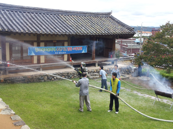 향교대성전에 원인모를 화재가 발생하여 향교 건물 전체로 연소 확대되고 있어 신속한 현장대응이 필요한 훈련 상황으로 재연해 화재의 초기대응 및 진압 역량강화로 문화재 보호태세를 확립하고 유관기관들간 상호 협조체계 구축 및 안전문화 조성을 목적으로 실시된 훈련이다.
