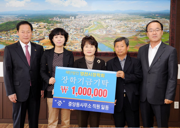 영천시장학회에 뜻깊은 기탁이 이어지고 있다. 29일 중앙동(동장 이잠태) 직원일동, 영천시 한일문화교류회, 이상근 영천희망원 원장이 각 100만원의 장학기금을 영천시장학회(이사장 김영석)에 기탁했다.