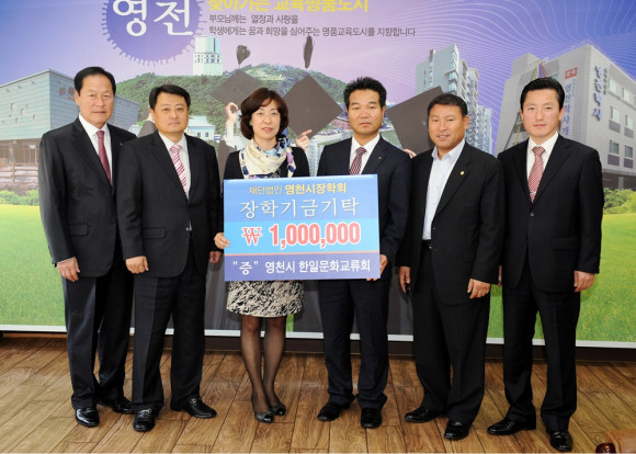 영천시 한일문화교류회는 양국 문화교류에 관심 있는 지역민과 지역에 거주하는 일본인들로 이루어진 모임으로 지역축제가 있을 때마다 참가하여 일본문화체험행사 및 영천시 홍보로 양국의 문화교류에 이바지하고 있다. 박거원 회장은 “다양한 행사로 지역의 한일문화교류에 더욱 힘쓰도록 하겠다. 교육은 백년지대계로 꾸준한 관심과 지원이 지역교육발전의 토대가 된다는 생각으로 2009년부터 매년 장학기금을 기탁해오고 있으며 앞으로도 계속할 생각이다.”고 기탁소감을 전했다.