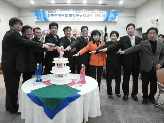 이날 이 취임식에는 청통풍물단(단장 박순점)에서 힘참 풍악으로 취임을 알리고, 정희수 국회의원과 김영석 시장은 축전을 보내 축하했으며, 청통면 다인영농조합 이진문 대표는 청통청년회 발전기금 1백만 원 을 전달하며 황 회장의 출범을 축하했다.