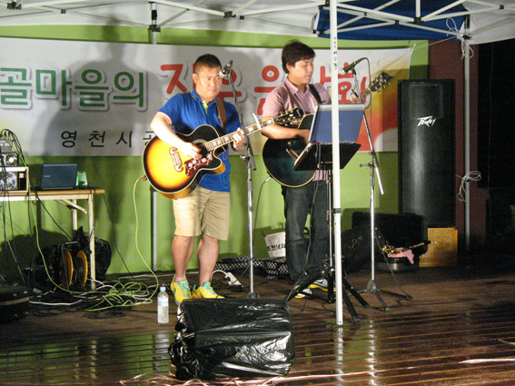 ↑↑ 좌로부터 김용호 씨, 이상훈 씨가 음악봉사를 하고 있는 모습.