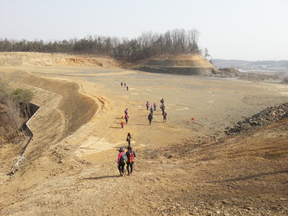 갑자기 앞에 이국적인 풍경이 나타났다. 마치 사막의 공원 같은 것이, 경산시 와촌면 대동리 공단 확장 현장이다. 야산을 깍아 만든 터였다.