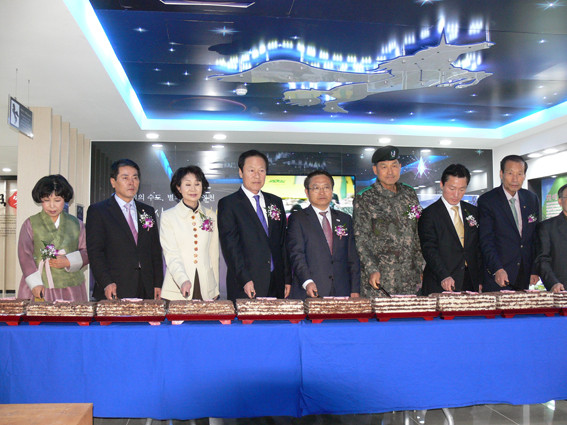 | | | ↑↑ 김영석 시장(좌측에서 네번째)과 김길영 학교장(우측에서 세번째)이 홍보관 내에서 케이크를 자르고 있다. | | ⓒ 영천시민뉴스 | | 영천3사관학교 내에 영천시와 경상북도를 알릴 수 있는 홍보관이 개관 됐다.