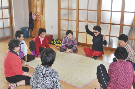 ↑↑ 주민들이 경로당에서 윷놀이를 즐기고 있다.