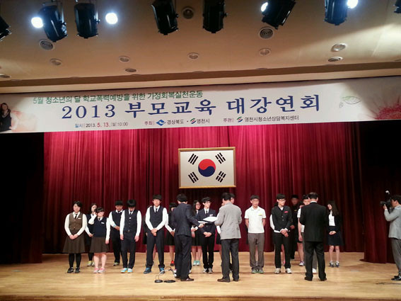 영천시 청소년 상담복지센터는 지난 13일 청소년수련관 2층 강당에서 청소년의 달을 맞아 학교폭력예방을 위한 가정회복실천운동을 위한 ‘2013 부모교육 대강연회’를 열었다.