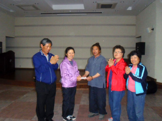 청통면 보성리 영농조합법인 혜원목제(사장 이영은)에 근무하는 기능보유자 문석헌 씨(사진중앙)가 청통면민종합복지관에서 월·목요일에 연습하고 있는 청통면풍물회원들에게 지난 20일 50만원을 전달했다.