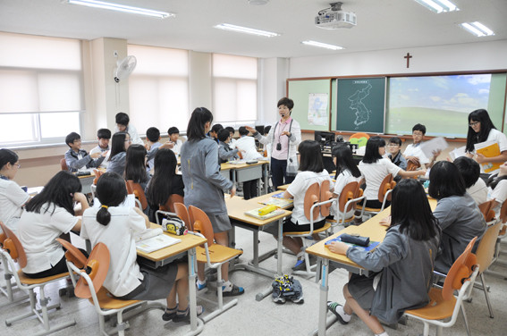 특히 영어교과교실은 학생들이 자유롭게 주제를 정한 뒤 토론수업을 하고 있었다. 수업이 끝나는 종이 울렸지만 학생들은 자리를 떠날 줄 모르며 교사 또한 학생들의 질문에 답하며 수업을 하는 모습이 인상적 이였다.