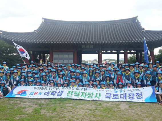영천 전승비 답사 6·25 전쟁 63주년 기념과 정전 협정 60주년 기념해 대학생 전적지 답사팀이 지난 1일 영천을 방문했다(3사관학교에서 1박). 이들은 140명의 대학생으로 구성, 한사람의 낙오자도 없이 포항을 거쳐 부산 해군작전 사령부까지 6·25 참전 용사들의 흔적과 발자취를 따라서 이동했다. 대장정은 4일 마쳤다.