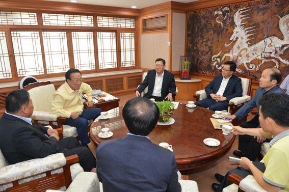 ↑↑ 김관용도지사(좌측 두번째)가 지역신문협회 회장단과 대담을 하고 있다.