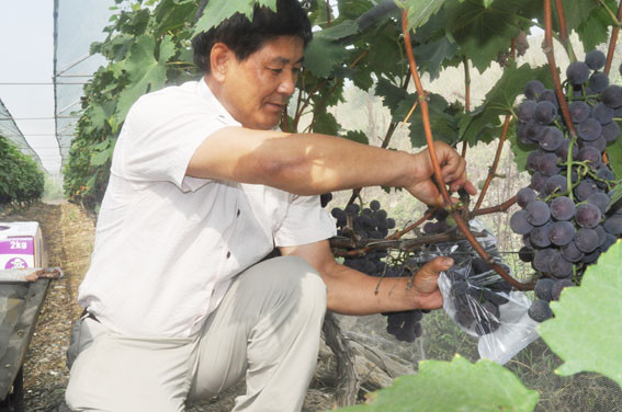포도수확이 한창이다. 영천은 흑포도 캠벨을 시작으로 거봉과 MBA가 출하를 준비하고 있다. 영천은 일교차가 크고 일조량이 풍부해 맛과 향이 좋다. 사진은 금호읍 오계2리 조성현 이장이 거봉포도를 수확하고 있다.