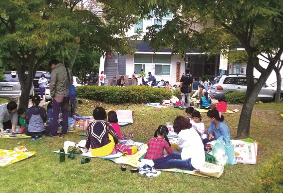 ↑↑ 미술실기대회와 백일장에 참가한 시민들이 조양공원에서 경합을 펼치고 있다.