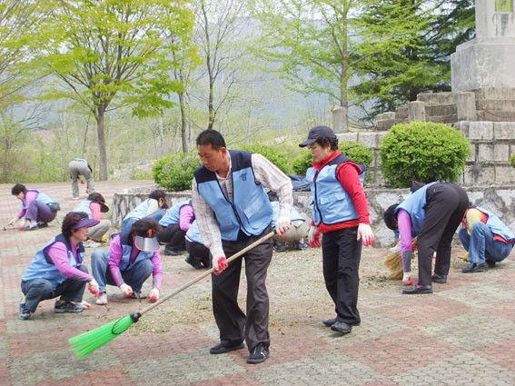 회원 28명이 참가한 이날 정화사업은 전승비 주위의 잡초제거 및 생활쓰레기를 수거했다.