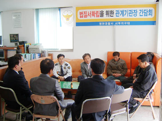 영천경찰서 서부지구대는 이달 초, 서부지구대사무실에서 관내기관단체장을 초청해 법질서 확립을 위한 간담회를 개최했다.