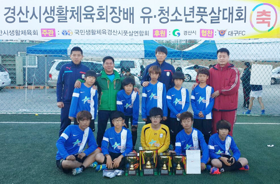 팀은 지난 10일 대구FC유소년축구센타에서 열린 제2회 경산시 생활체육회장배 유·청소년 풋살대회에 처녀출전해 바라지도 않은 영광의 우승컵을 들어 올렸다. 또 팀을 이끈 최 감독은 최우수 감독상을 받았는가 하면 최우수선수상에 김태현(중앙초등학교), 최우수골키퍼상은 이상우(포은초등학교)선수가 각각 받아 기쁨이 더 컷다.