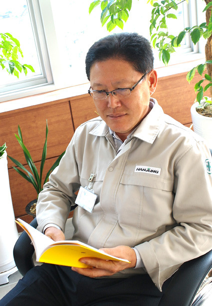 ↑↑ 김환식 시인이 업무중에 잠시 시집을 꺼내어 읽고 있다.
