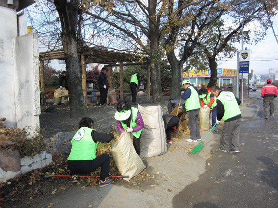 가을철 떨어지는 낙엽과 민원인들이 버스와 친구들을 기다리게 만들어 놓은 편의시설 의자부근의 생활쓰레기를 자연보호 회원들이 두 팔을 걷어붙이고 낙엽을 골라 포대에 담는 일과 담은 낙엽을 퇴비로 사용하는데 보내기로 하고 폐휴지등은 별도구분 정화활동을 통해 주위를 깨끗하게 해 주었다.