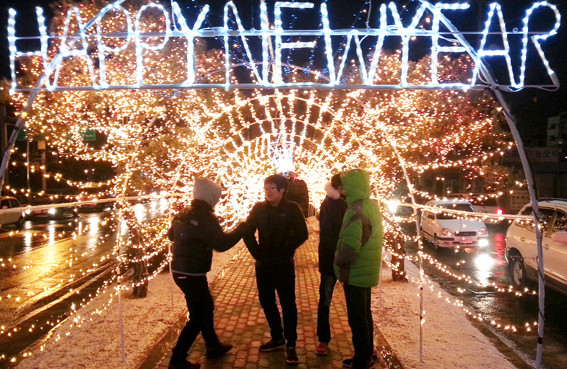영천시가 연말연시를 맞이해 사랑의 마음과 배려의 문화 확산을 위해 가로수목을 이용해 만들어놓은 시청오거리 터널 형 트리가 시민들의 이색 야간 포토존이 되고 있다. 사진은 지난 5일 내린 첫눈 속에서 시민들이 기념사진을 찍기 위해 트리 안을 걷고 있다.