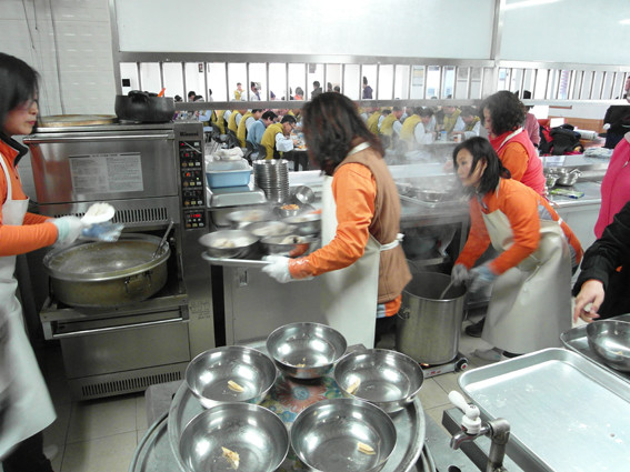 ↑↑ 식당내에서 배식을 하는 블루베리 봉사단.