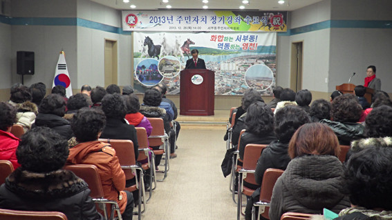 서부동 주민자치위원회(조순태 위원장)는 지난 26일 서부동 회의실에서 주민자치강좌 수강생 등 120여명이 참석한 가운데 2013년 주민자치센터 정기 강좌 수료식을 개최했다.