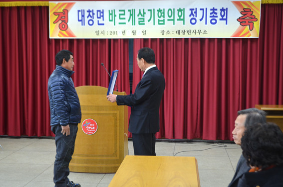 점심으로 1시간반동안 진행되었다, 박주득 연합회장은 이 자리에서 축하내빈수가 회원수와 동등하자 회원 수를 늘려야 되겠다고 지적했으며 정경옥 대창면장은 바른 생각으로 법질서캠페인과 미래창조개발에 감사하다고 하였다.