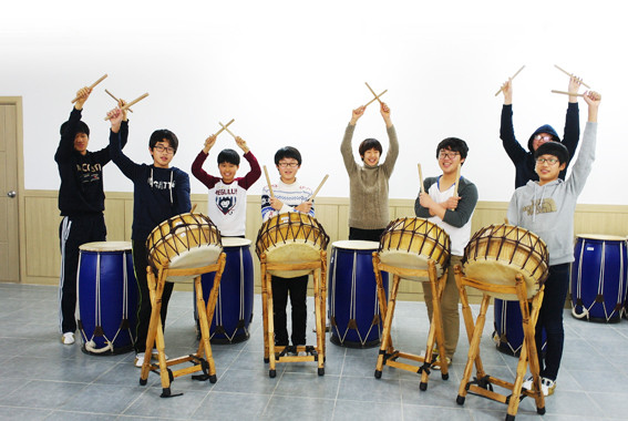 북을 치는 최홍민(3학년) 학생은 “본래 음악에 관심이 많아 관악도 하고 기타도 치는데 사물놀이반에 와서 완전히 매료되었어요. 박자감도 늘고 음악적으로 도움이 많이 되요. 예고에 가서 음악을 전공할 예정인데 제 전공을 살리는 데 좋은 경험이 될 것 같아요.”라고 말한다.