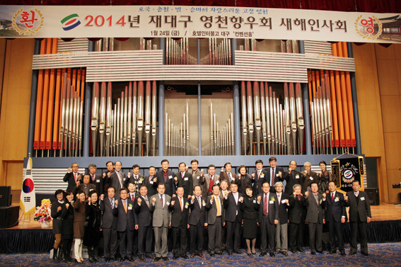 재대구영천향우회는 지난달 24일 대구시 수성구 인터불고호텔에서 새해인사회를 가졌다. 이날 인사회는 지역인사 및 향우회원 400여명이 참석하여 말과 항공산업을 통하여 세계 속으로 부상하고 있는 영천의 발전을 기원했다.