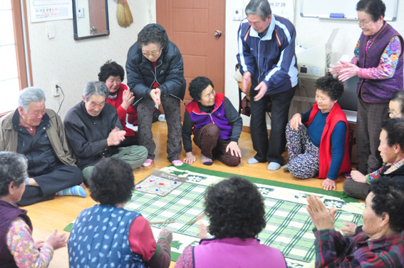 | | | ↑↑ 원당마을 주민들이 신명나게 윷놀이를 하고 있다. | | ⓒ 영천시민뉴스 | | 경주행 국도에서 임포방면 도로로 내려서면 바로 굴다리를 통해 반대쪽으로 향해 내포리를 지나쳐 왼쪽으로 원당마을의 표지석이 마을입구를 알려준다. 900년대에 개척한 마을로 크고 살기에 좋다고 하여 원당(元堂)이라는 이름의 자연부락으로 시작했다. 전체 24가구, 29명의 주민들이 한가족처럼 서로를 의지하며 오순도순 살고 있는데 다른 농촌마을과 크게 다를 바 없이 독거노인들이 주를 이루고 한가구가 최근에 집을 짓고 이주해 들어왔고 주말농장형태로 주말에 농사를 짓고 돌아가는 이가 8가구가 된다. 취재를 위해 마을로 찾아간 날, 주민들은 나지막하고 정겨운 회관에 가득모여 윷놀이 한판을 벌이고 있었는데 농한기에는 매일 그곳에 모여 점심과 저녁밥을 같이 해먹고 시간을 보내니 한식구나 다름없다고 신명나게 이야기하는 어르신들을 만날 수 있었다.