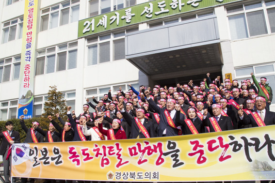 | | | ⓒ 영천시민뉴스 | | 경상북도의회(의장 송필각)는 지난 20일 도의회 전정에서 일본의 시마네현 다케시마의 날 기념행사 규탄 결의대회를 개최했다. 이날 결의대회에는 송필각 도의회 의장과 한혜련 부의장, 장경식 독도 수호특별위원장 등 도의원을 비롯해 안용복재단 사무처장, 대한민국 고엽제 전우회 윤한우 경북지부장과 회원 등 100여명이 참석했다.