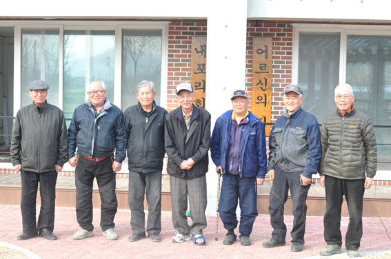 ↑↑ 이상식 노인회장(맨 왼쪽)과 김춘규 전 이장(맨 오른쪽)을 비롯한 마을 주민들의 모습.
