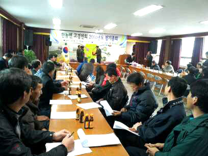 | | | ↑↑ 한농연 고경면회 총회가 진행되고 있다. | | ⓒ 영천시민뉴스 | | 농업 경영인 고경면회(회장 김대원)은 지난달 28일 고경면사무소 회의실에서 2013년도 결산 및 2014년도 예산안을 수립하는 총회를 개최했다.