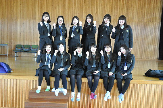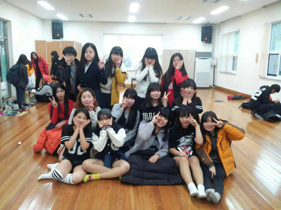 ↑↑ 성남여고 댄스동아리 나래 팀원들이 화이팅을 외치고 있다.