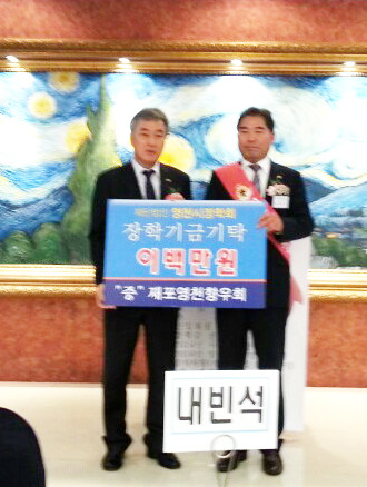 고향의 어려운 이웃돕기, 독거 어르신을 위한 봉사, 경로당 지원 등의 활동뿐만 아니라 지역 인재육성을 위해 2007년부터 지금까지 영천시 장학회에 1000만원의 장학금을 기탁하였고 이번 총회에서도 회원들의 정성을 모아 200만원을 기탁했다.